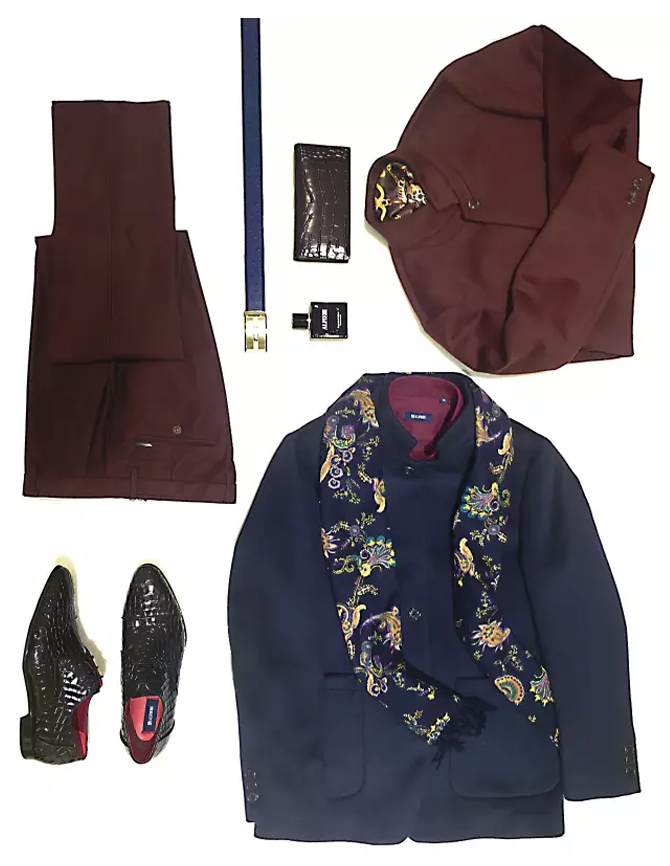 酒红是高贵又有些神秘的颜色,男士穿酒红,比如勃艮第酒红,除了高贵绅士,还有些温柔温暖之感,而酒红色也是相当衬肤色的一个颜色,男士的酒红可以选择暗些低调些的。